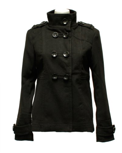 Ladies Black Button Pea Coat Shoulder Straps Review